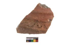 | Description / विवरण | Fragment of a grooved red slipped ware.On the unslipped portion, decoration of horizontal zig-zag of punctured dots have been made. |