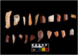 | Description / विवरण | There are n - 20 blades are made from Chert. Among these n -5 blades are complete in shape and n -7 blades are had been retouched. In these assemblage n -1 blade is point, n-1 blade is crescent, and n - 2 blades are triangles.Rests are partially broken and devoid of any kind of retouching or backing |
