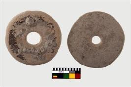 | Description / विवरण | A perforated disc made of pottery wares. It has central perforation. This can be used as spindle whorl. |