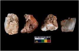 | Description / विवरण | There are n-4 of intact cores made up of Chalcedony. There are multidirectional irregular dominant scar pattern on both dorsal and ventral face of the cores. |
