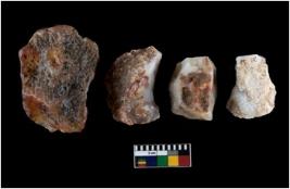 | Description / विवरण | There are n-4 of intact cores made up of Chalcedony. There are multidirectional irregular dominant scar pattern on both dorsal and ventral face of the cores. |