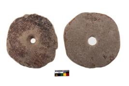 | Description / विवरण | A perforated disc made of pottery wares. It has central perforation. This can be used as spindle whorl. |