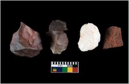 | Description / विवरण | There are n-4 of intact cores. Out of them 3 are made up of Chalcedony and 1 is made up of Chert. There are multidirectional irregular dominant scar pattern on both dorsal and ventral face of the cores. |