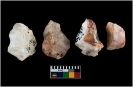 | Description / विवरण | There are n-4 of intact cores made up of Chalcedony. There are multidirectional irregular dominant scar pattern on both dorsal and ventral face of the cores. |