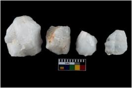| Description / विवरण | There are n-4 of Cores. All are made of Quartz.Thet are fully fluted Cores, 2 with trace of Crested ridge flake. |