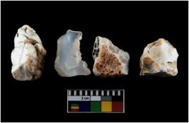 | Description / विवरण | There are n-4 of intact cores. Out of them 3 are made up of Chalcedony and 1 is made up of Agate. There are multidirectional irregular dominant scar pattern on both dorsal and ventral face of the cores. |