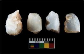 | Description / विवरण | There are n-4 of intact cores made up of Chalcedony. There are multidirectional irregular dominant scar pattern on both dorsal and ventral face of the cores. |