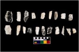 | Description / विवरण | There are n - 20 blades made from Quartz.All are partially broken and devoid of any kind of retouching and backing. |