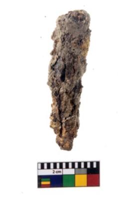 | Description / विवरण | A specimen of an iron nail broken from both the ends. It is highly rusted. |