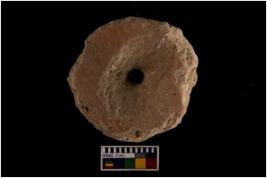 | Description / विवरण | The object is a perforated disc of material teracotta. A red colour slip has been applied on it.The perforation in most of the cases was drilled from both the faces. These might have been used as whorls. |