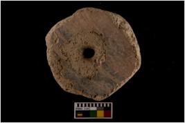 | Description / विवरण | The object is a perforated disc of material teracotta. A red colour slip has been applied on it on which black colour bands have been painted.The perforation in most of the cases was drilled from both the faces. These might have been used as whorls. |
