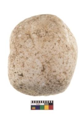 | Description / विवरण | Partially broken specimen of hammer stone made up from quartz with battered surface |
