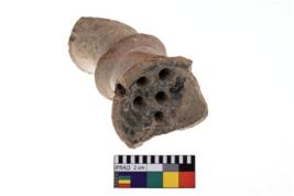 | Description / विवरण | A specimen of red ware pipe with perforation. |