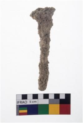 | Description / विवरण | A specimen of an iron nail having runded top and tapered end. It is highly rusted. |