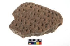 | Description / विवरण | A specimen of skin scrubber with incised design. |