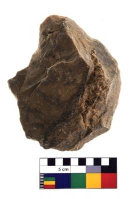 | Description / विवरण | Side scraper of quartzite with working edge. |