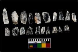 | Description / विवरण | A set of 20 number intact microlithic blades, made up of quartz. All these blades have retouched and sharp edges. |