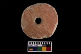| Description / विवरण | The object is a perforated disc of material terracotta. A red colour slip has been applied on it. The perforation in most of the cases was drilled from both the faces. These might have been used as whorls. |
