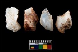| Description / विवरण | There are n-4 of intact cores made up of Chalcedony. There are multidirectional irregular dominant scar pattern on both dorsal and ventral face of the cores. |