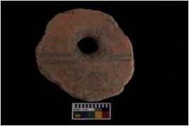 | Description / विवरण | The object is a perforated disc of material terracotta. A red colour slip has been applied over which black bands have been painted.The perforation in most of the cases was drilled from both the faces. These might have been used as whorls. |