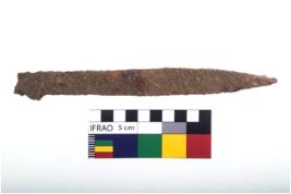 | Description / विवरण | A complete specimen of chisel without the ring, bulbous shoulders, pointed tang a long blade, working end bevelled but short and flat. |