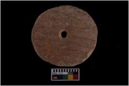 | Description / विवरण | The object is a perforated disc of material terracotta. A red colour slip has been applied over which black bands have been painted.The perforation in most of the cases was drilled from both the faces. These might have been used as whorls. |