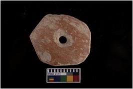 | Description / विवरण | The object is a perforated disc of material terracotta. A red colour slip has been applied. The perforation in most of the cases was drilled from both the faces. These might have been used as whorls. |