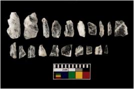 | Description / विवरण | A set of 20 intact microlithic blades, made up of quartz. All these blades have retouched and sharp edges. |