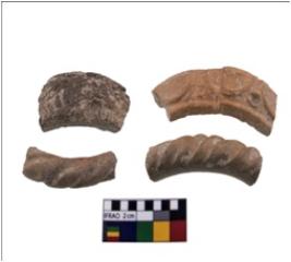 | Description / विवरण | Broken pieces of terracotta bangle, some with the oval design, some with linear design some are broad in shape and are proper round shape |