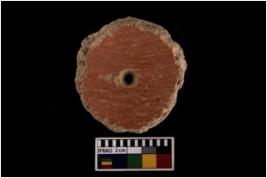 | Description / विवरण | The object is a perforated disc of material terracotta. A red colour slip has been applied on it. The perforation in most of the cases was drilled from both the faces. These might have been used as whorls. |