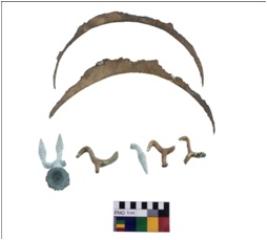 | Description / विवरण | Partially broken pieces of decorative object, some animal figures, some semicircular shape |