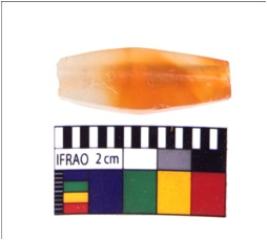 | Description / विवरण | Intact, pentangular, long barrel shaped bead |