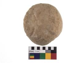 | Description / विवरण | Complete specimen of a circular shaped hammer stone with battered surface |