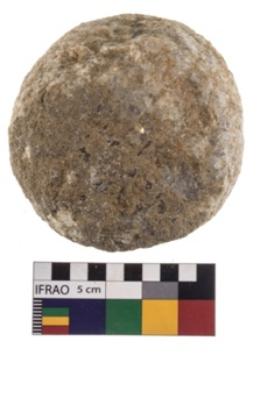 | Description / विवरण | Partially broken specimen of a hammer stone |