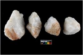 | Description / विवरण | There are n-4 of cores. All of them are intact fully fluted cores without any trace of crested ridge flakes made up of Quartz. |