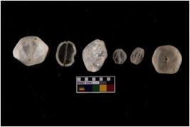 | Description / विवरण | A group of quartz beads. These are Hexagonal, flat disc and short tubular in shape. These have longitudinal cross section. |