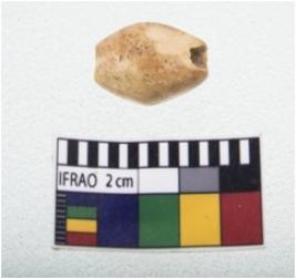 | Description / विवरण | Intact, flat barred barrel shaped bead |