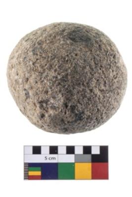 | Description / विवरण | A partially broken specimen of roughly round shaped hammer stone with battered periphery along with the circumference |