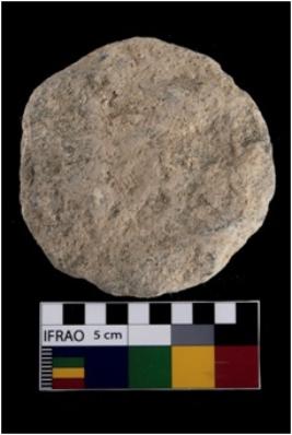 | Description / विवरण | A partially broken specimen of a stone disc object made from Quartz.The edge of the disc is partially broken and both side of the disk contains rough surface |