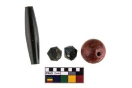 | Description / विवरण | A group of long tubular, hexagonal and globular beads. |