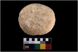 | Description / विवरण | A partially broken specimen of spherical shaped hammer stone it is broken in half. |