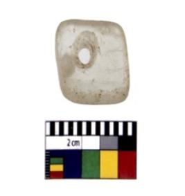 | Description / विवरण | Intact, Flat, Squarish shaped bead, on one of its parts there are two perforations |