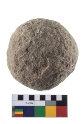 | Description / विवरण | A partially broken specimen of roughly round shaped hammer stone with battered periphery along with the circumference |