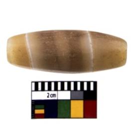 | Description / विवरण | Intact, Long barrel shaped bead, banded agate |