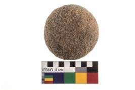 | Description / विवरण | A complete specimen of a spherical shaped hammer stone with a flat base made up from quartz |