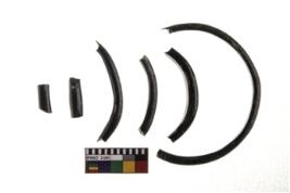 | Description / विवरण | A group of glass bangle, On some pieces symetrical lines for design has been made. One bangle is polychrome wherein on the upper side white dotted design has been made. |
