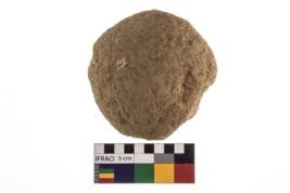 | Description / विवरण | A partially broken specimen of a spherical shaped hammer stone made up from quartz |