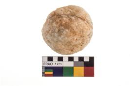 | Description / विवरण | A complete specimen of a semi - circular shaped hammer stone made up from quartz |