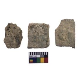 | Description / विवरण | three coins, squarish in shape, corroded |