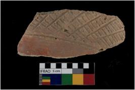 | Description / विवरण | A red slipped shred, with a imcised ladder design. |